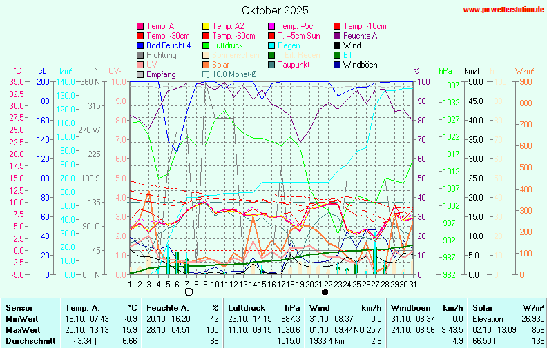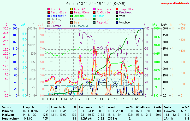 | Die dargestellten Werte repräsentieren die Daten der letzten 24 Stunden! Der Luftdruck ist auf Meereshöhe bezogen! |