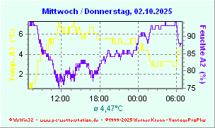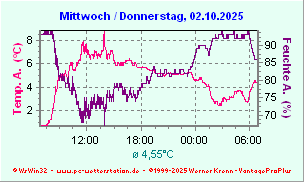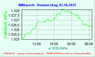 Die dargestellten Werte repräsentieren die Daten der letzten 24 Stunden! Der Luftdruck ist auf Meereshöhe bezogen! |