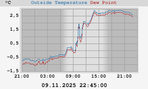 min: -0,8°C at 00:00:13 max: 3,0°C at 17:19:13