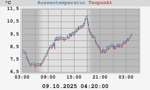 min: 4,5°C at 02:41:25 (Montag) max: 11,1°C at 17:58:11 (Mittwoch)