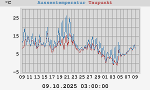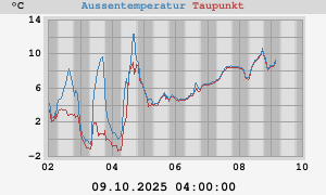 min: -0,8°C at 03.10.2025 07:46:15 max: 13,7°C at 04.10.2025 15:37:19