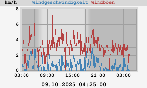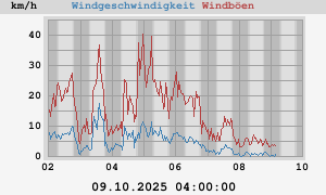 max: 22,6 km/h at 03.10.2025 13:55:00 max gust: 40,4 km/h at 04.10.2025 23:41:34